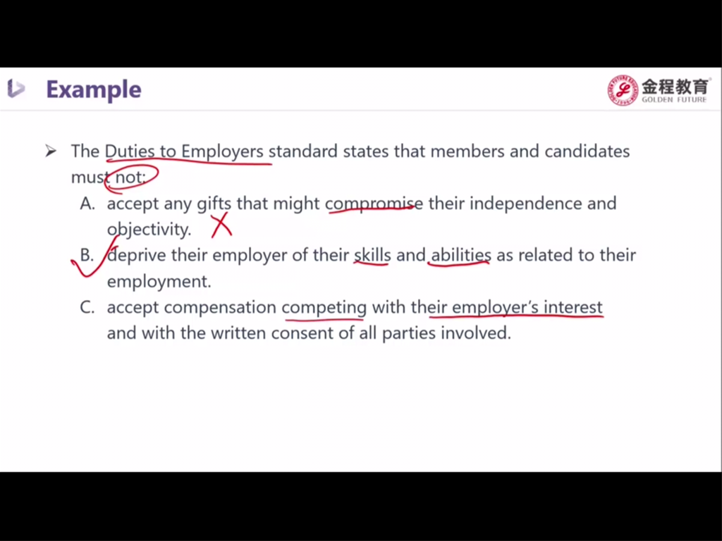 B选项,如何会剥夺到雇主的能力和技能呢?