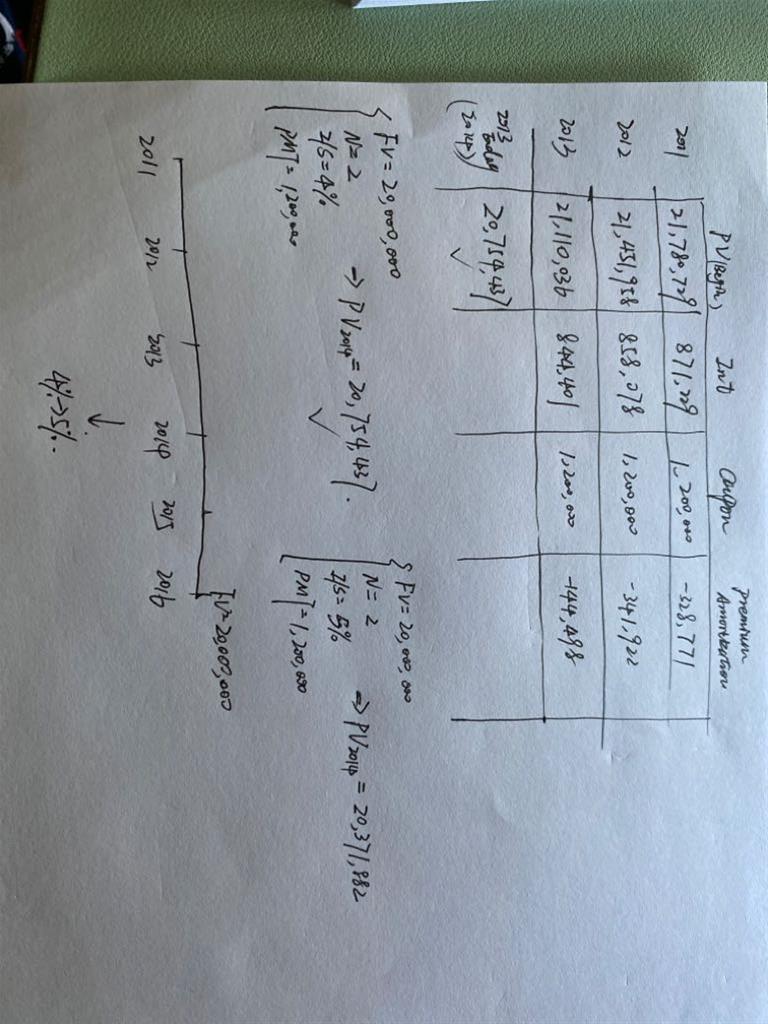 老师您好, 我会用金融计算器算这个题,但是用实际利率法我只能求出2013年末的值(和计算器结果相同),而改变利率后(由4%变为5%)如何用表格求出此时的值?