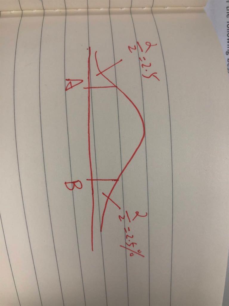 这里α是5% 作为2tails 应该长这样(图一),且题目问的是图中A B两个点应该是多少 所以应该用α为2.5%时对应的critical value不是吗? 你看如图二那样 critical value所在的位置来说 我们应该用α/2 也就是2.5%