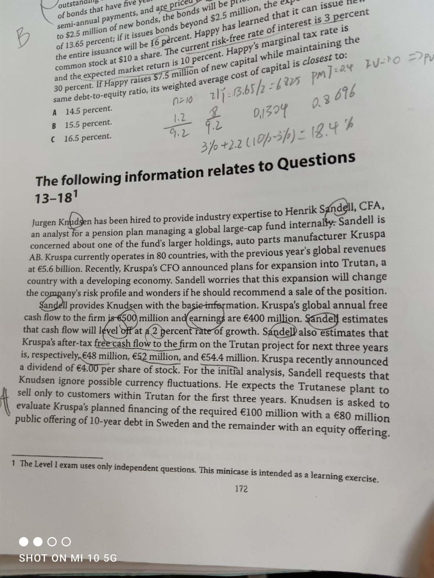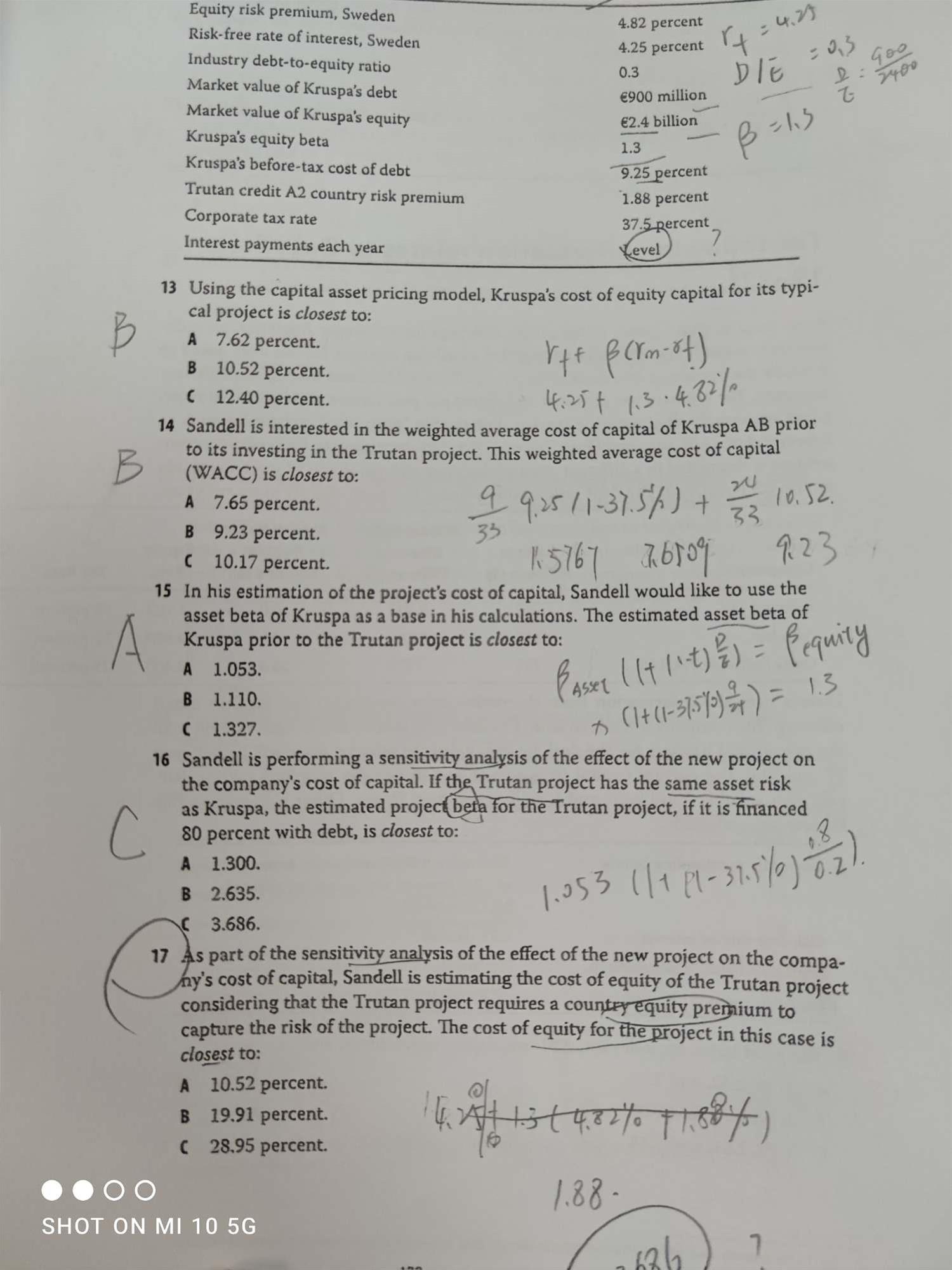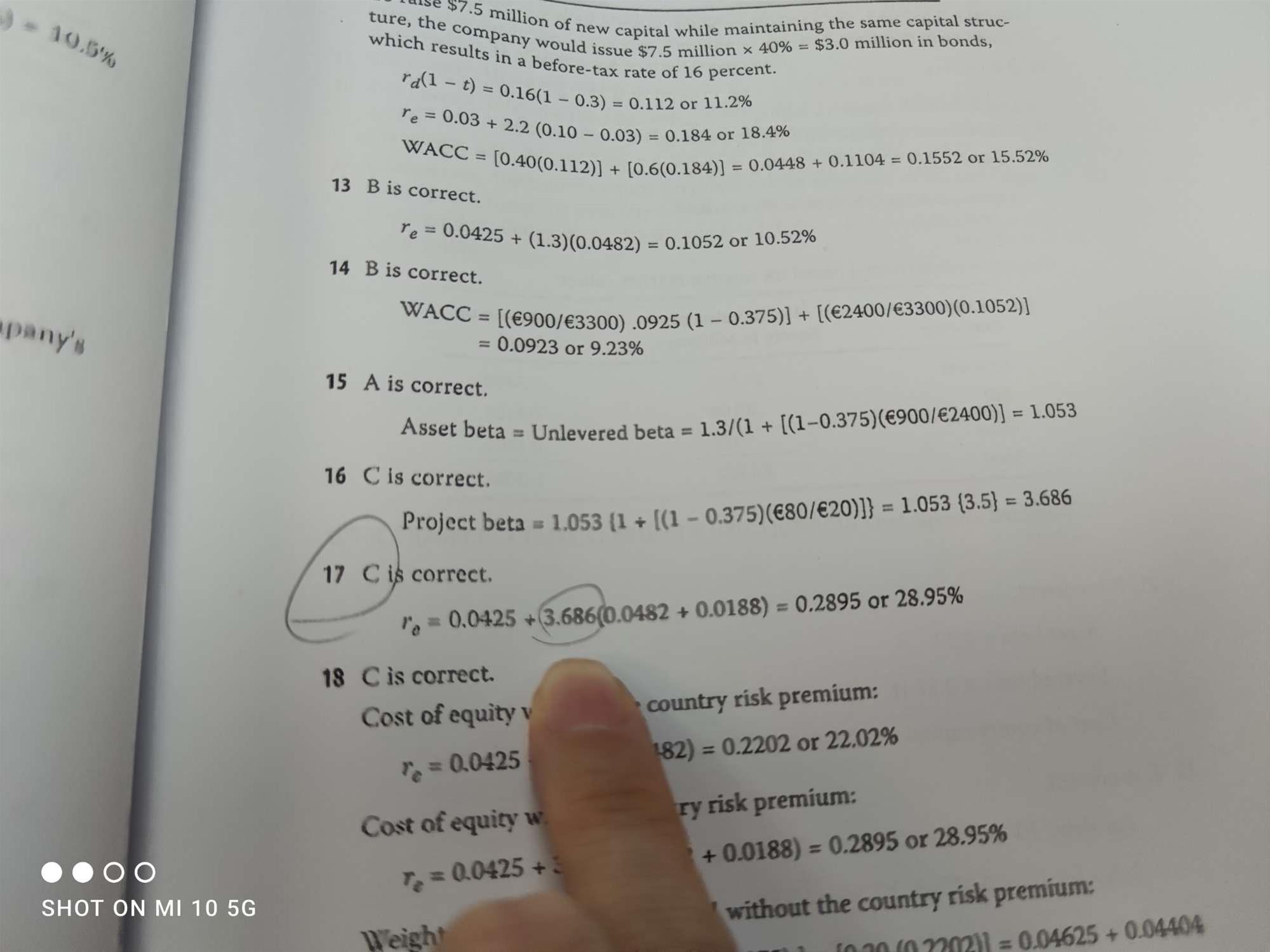 此题目为学校发的“2020年CFA一级经典题题目”中的,想问第17题,题目答案中的beta为什么是3.686,而不是1.3.