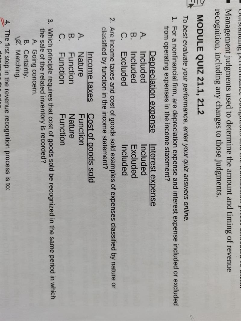 老师好,这是财报中利润表一章,NOTES上的题目。图片中的第1/2两个问题。 1.课后答案是B,但利息费用在GAAP下是可以放在营运费用的吧?题目并没有说执行GAAP还是IFRS。 2.课后答案是A,但所得税无论在nature还是function下都会列式吧?谢谢