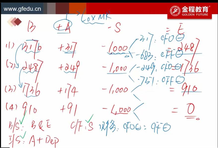 已回答因为所有资产负债表的科目都可以用BASE法则来求各年的期初和期末值,但是这里的A列是计入I/S中,S列计入C/F中,B和E是BS科目,那么可否理解为,这张表生动的展示出了三张报表的勾稽关系呢?除此外,我还想请教一下融资租赁设备,计入资产和负债,资产每年有折旧,负债每年有利息,但是折旧是抵减资产项,可以计入B/S 和I/S里面, B/S里面是Dep,I/S里面是Dep expense;那负债科目的利息费用,是否计入B/S科目里面,还是直接计入1/S里面?比如一个融资租赁1000块钱,B/S Asset 1000, Dep 100, BV就是900, Liability 1000, Interest payable 100, total liability 1100, 然后IS 里面interest expense 100, 是否这样记录呢?