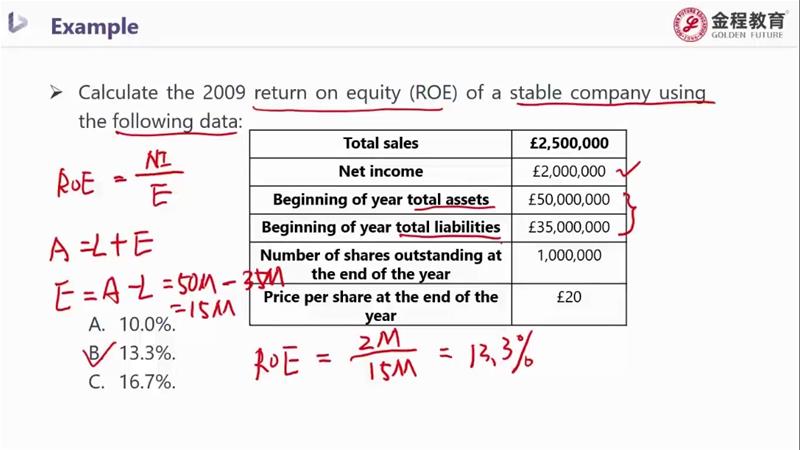 老师您好这题为什么用年初的total asset -total liabilities就可以了?不是应该考虑年末的嘛?