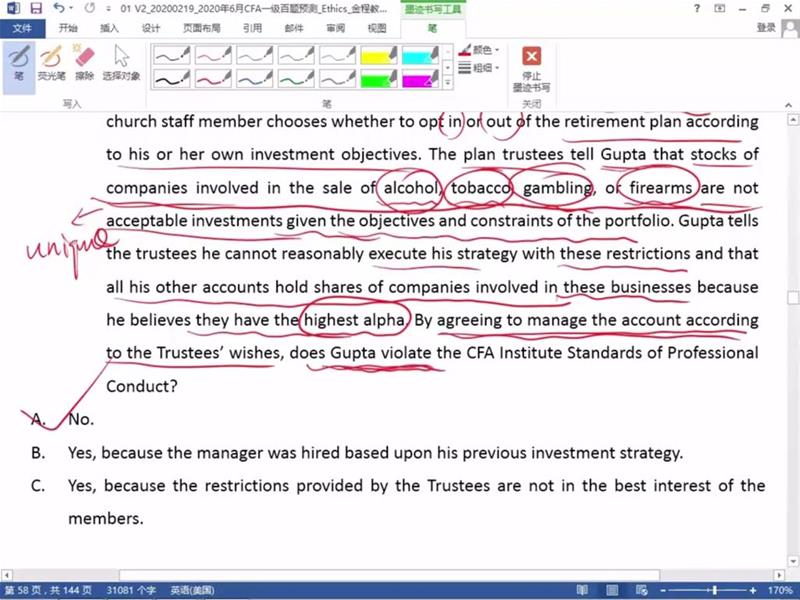请问题目中说了这个是based on the clients’ objective to maximize returns with the lowest possible risk. 既然这个投资是基于客户的目标的,不是应该不违反吗?