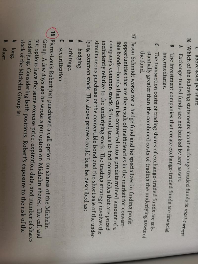老师,第17题,我觉得这道题应该选A吧? 因为arbitrage的定义是earn economic profits with no capital invested, 题目里面描述的,我感觉是hedge fund的relative value strategy哈,麻烦老师解释一下,我记得之后衍生品里面对于套利的定义是不能有capital投入的。