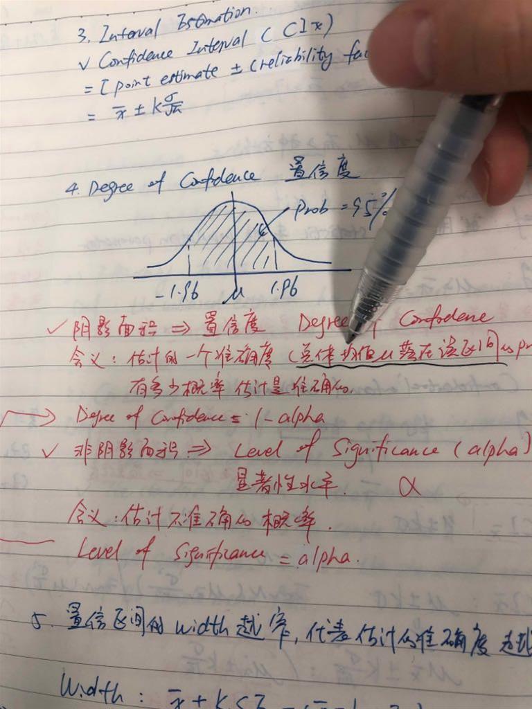 已回答1. 老师,置信区间为什么宽带越窄,估计准确度越高? 2. 基于1的结论, width=2k s/根号下sigma,应该是k越小越好。 可是k如果越小,置信度越小,置信度越小估计准确度应该越低啊。比如,1.96和2.58,1.96对应的置信度是95%,2.58对应的置信度是99%,应该是99%置信度的估计准确度越高才对啊。我为什么会有这样的结论?错在哪?