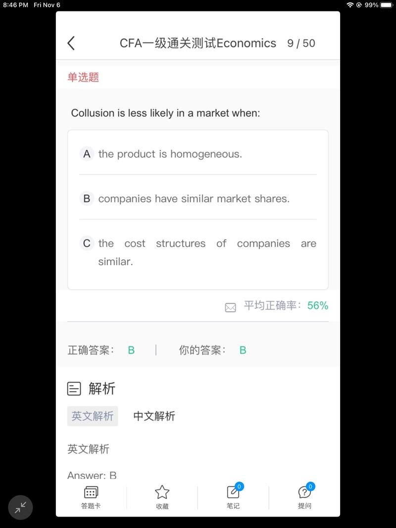 老师 这一题虽然做对了 但我还是不太理解B不对的原因 Oligopoly 假设汽油 其实他们卖着差不多的产品 针对差不多的客户 有着差不多的 cost structure 这个差不多的客户群无论在哪里 只要有车 有加油站 这不就是 similar market share 吗