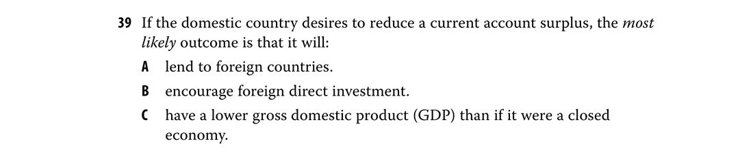 已回答老师好, 咨询附件图片中的题目。要减少经常账户的surplus,不就是经常账户要净流出,资本账户净流入吗?那既然是资本账户净流入,为什么encourage foreign direct investment不对呢?是因为外国直接投资不属于资本账户吗?还有选项C,也不是很懂。 谢谢。