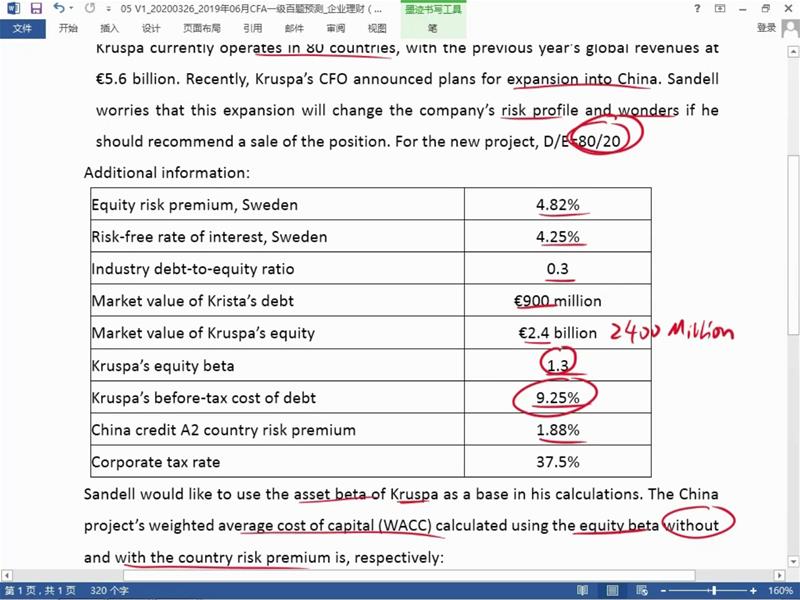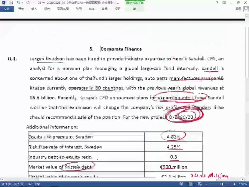 查看试题 已回答表格里industry debt to equity ratio和market value of Kruspa 's debt/market value of Kruspa's equity有什么不同呢?'