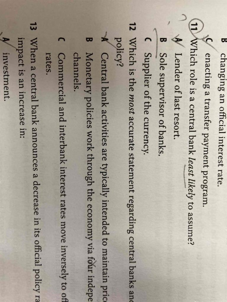 11题为什么不是a,货币局制度下央行不是最后的救助