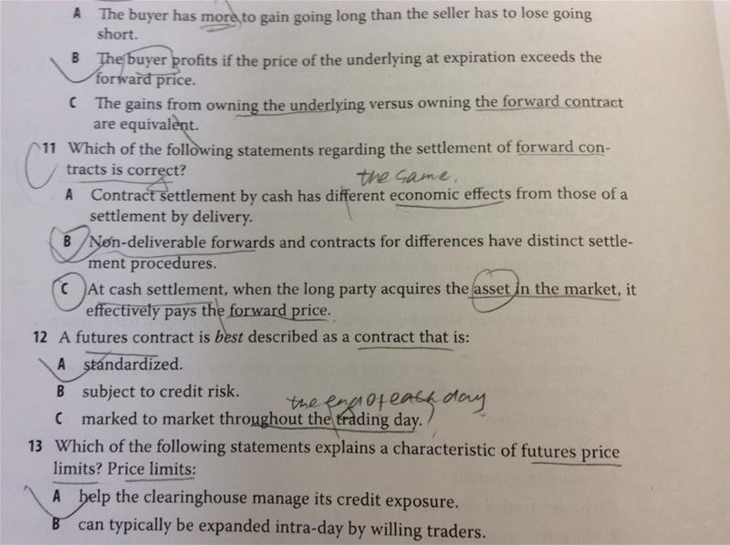 11题non-deliverable forward 怎么理解 c中 cash payment不就是买卖双方补差价即可么 为什么还需要付forward price 呢谢谢 acquire asset怎么理解