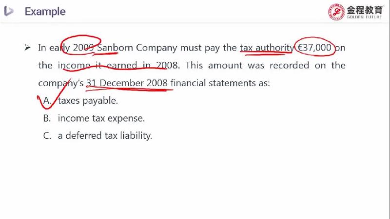 第2题,请问下记录在利润表也就是financial statements中的不应该是income tax expense吗?在tax purposes上才记录income tax payable,这道题问的是recorded on financial statement,为什么不选B呢?