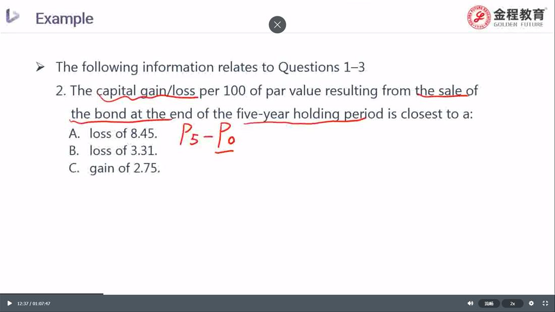 请问这道题是不是错了?selling price怎么会是未来现金流之和呢题目里也没说selling price是多少。这个未来现金流之和不应该是carring value吗?反而purchase price变成了carrying value。