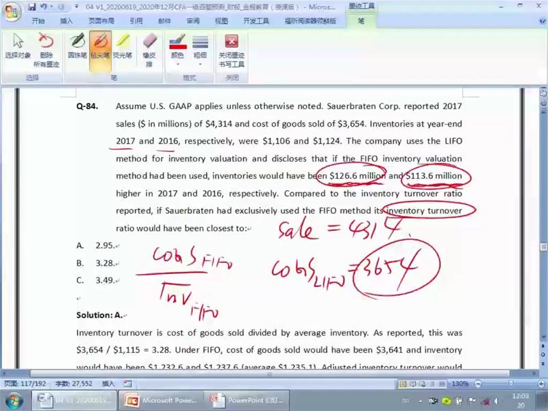 这题时间很乱,首先题目没说求哪年的inv turnover。其次这个inv平均,求17年的竟然用16和17年的平均值,这我不能理解。