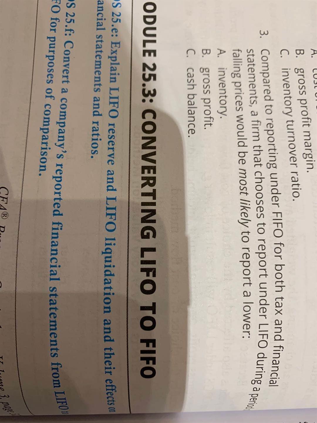 图中第三题正确答案是C,解释中说因为LIFO记账法的profit高了 所以交税多,现金余额减少。但是LIFO记账法下由于价格下降所以cogs也少了,花的现金不是也少了,这一个因素完全不考虑吗,怎么就能得出结论说现金余额由于税费问题变少了