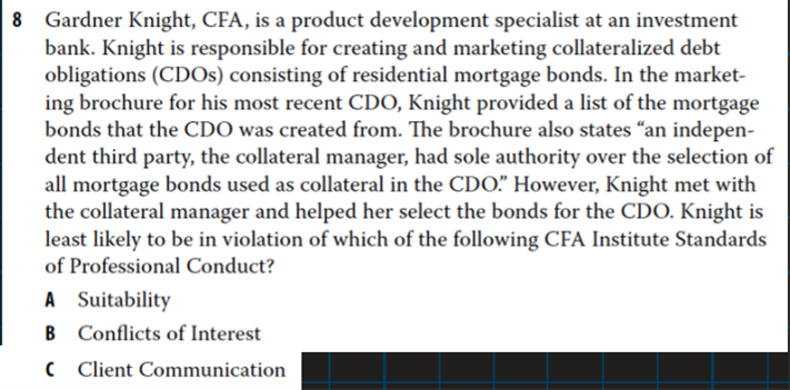 - 为什么不是C选项呢?credit risk是由于借款人违约未能偿还而使债权人遭受损失的风险;solvency risk是由于自己财务状况不佳而无法偿还到期债务的风险。二者紧密相连