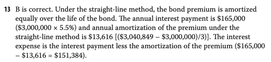 R28 课后13 这一题说用Straight Line Method,为什么答案默认是把amortization of premium本金部分去做一个类似的折旧摊销?拿到这种题应该怎么想?