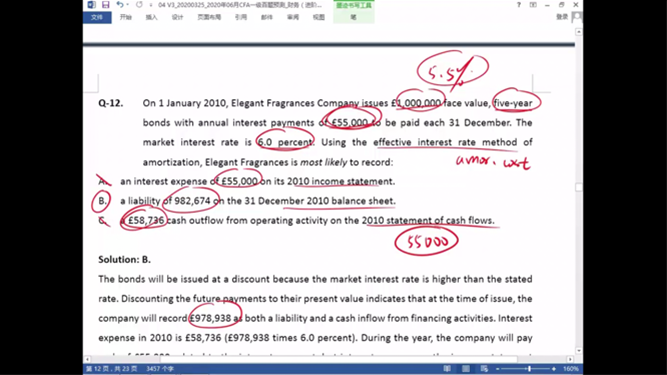 老师 这里我有点混乱 利息支付不是算在CFO里的吗 那为什么老师说C选项记错了 Interest expense 和 coupon pmt 到底应该分别记在哪里的呀