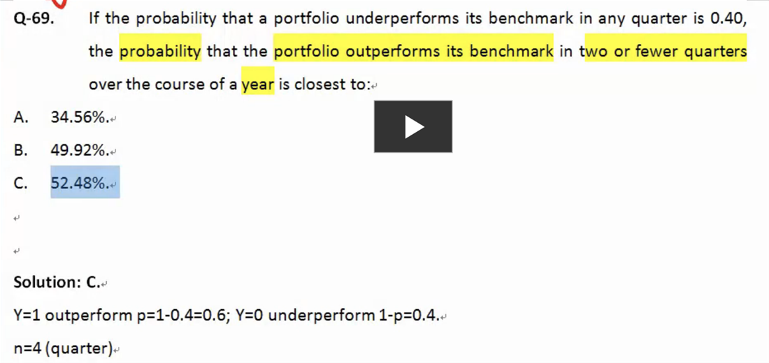 这里outperform benchmark和underperform benchmark并没有exclusive,没有考虑equal to benchmark的情况,为什么可以用1-0.4.