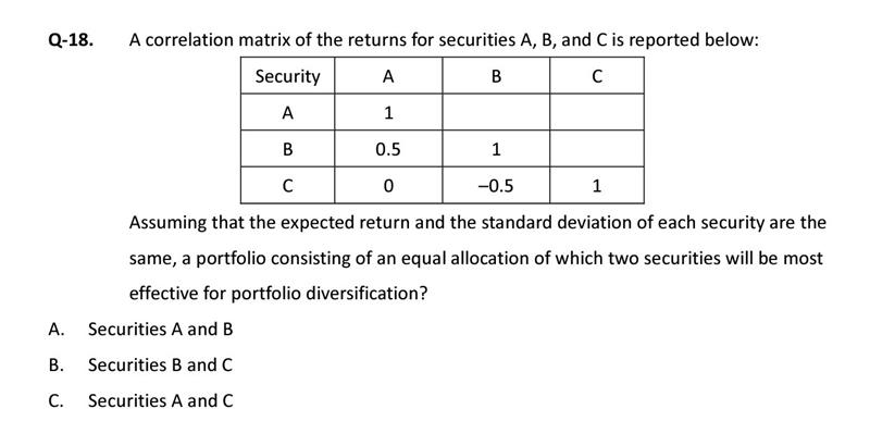 老师你好,为什么负相关对diversify最有效?不应该是没有关系才最有效么?C为什么不对?