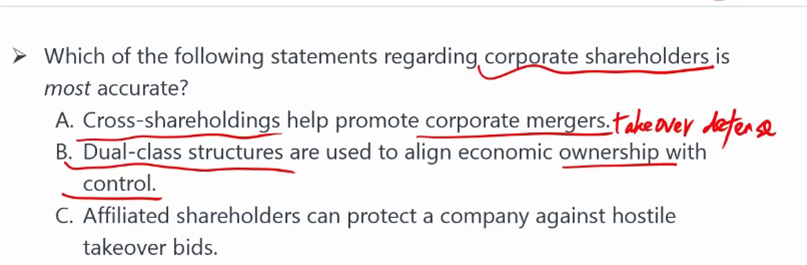 第一个图的BC选项解释下 第二个图的cross-shareholding 交叉持股是什么