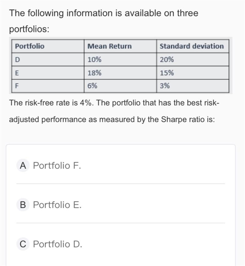 老师请见下图 这个题目求sharp ratio 根据公示的求法不是分子是risk portfolio-rish free 超额收益吗 但是题里只给了mean return 这个和excess return一样吗 疑惑