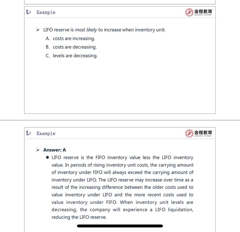 老师你好,这里选A是因为inventory unit cost上去导致lifo的inventory value比fifo的少是么?