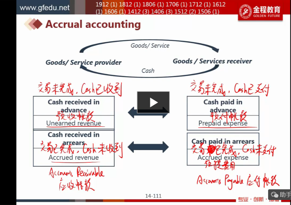 这里面的accrued revenue 计提收入。对应的会计科目是否是记入IS里面的Revenue,以及确认Asset里面的AR?cash paid in arrears 是否应该在当期确认IS里面的expense,还是叫做accrued expense,B/S里面确认AP呢?