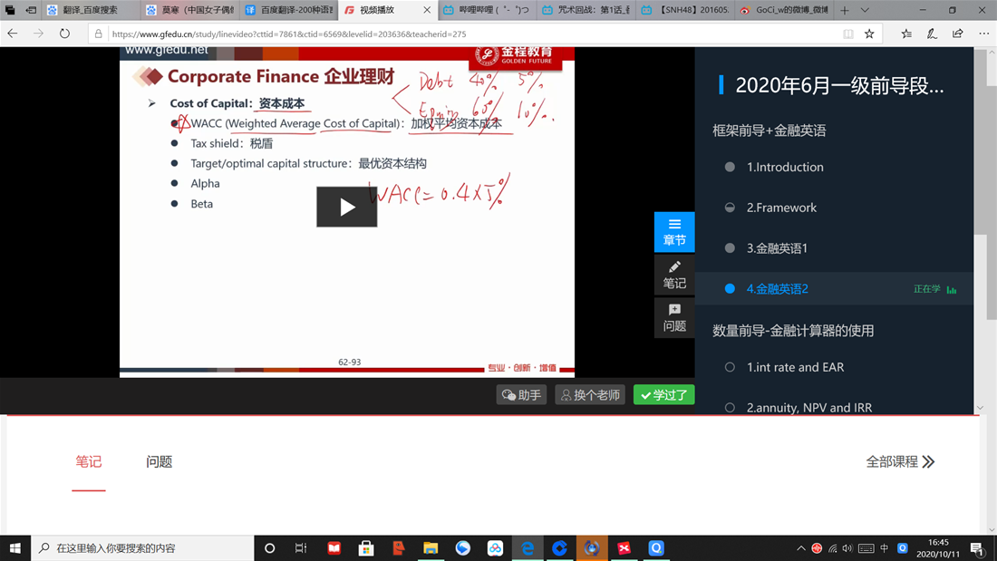 包含CFA一级传统在线课程、通关课程及试题相关提问答疑;