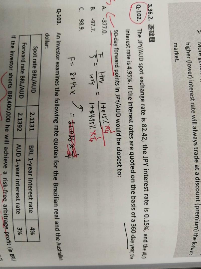 第102题,为什么不能用F–S/S=rx–ry来做?这样做出来结果是C