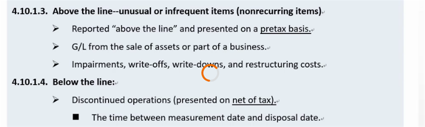 您好,老师: 我是直接听的百题,所以没有听过之前的可能,百题讲义 6.财报 里边 4.10.1.3的Above the line 这块儿的知识点(附图),没太大印象了。。在notes里也没能找到,麻烦能告诉下这块儿是在notes或者原版书的那一块儿讲的吗? 谢谢!~
