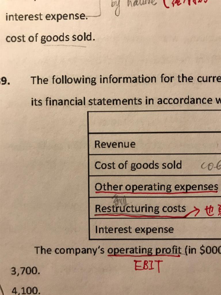 老师,根据PPt教材中的利润表,重组费用是属于偶尔发生的,列在融资费用之后。这里为什么会在求EBIT时把这个从组费用扣除掉?很疑惑