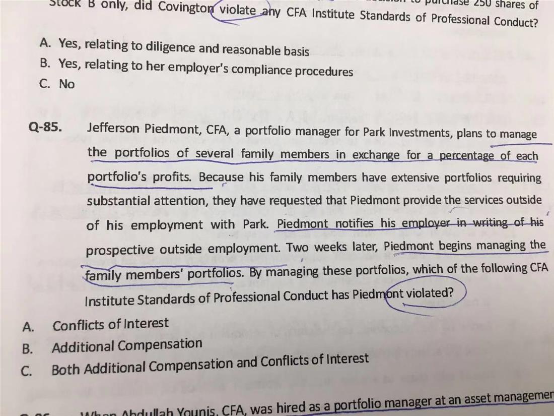 ***在解释这道题时说可能会有优先交易之类的,但是题目里没有出现啊,那应该没有Conflict of Interest只有Additional Compensation 违反了吧?不是说只选文中出现的信息相关的选项吗