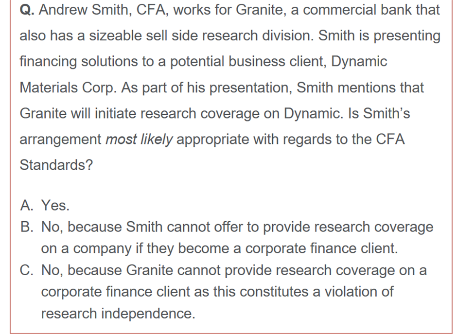 请问这一题从哪里看出来Smith是违反了客观独立。我只看出来答应写研报,没说大约写一份好的研报。