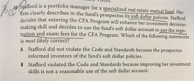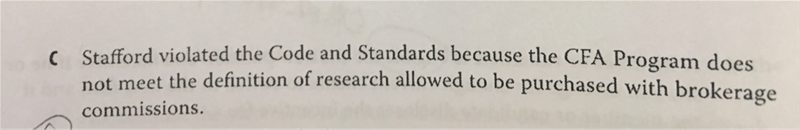 老师,您好,想问一下b选项为什么不对,对于softdollar来说,用在报名考试确实不是一个合理的用途啊?