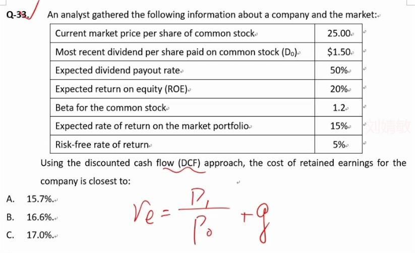 本题用DCF算出来是16.6%,用β、150%组合收益和5%无风险的CAPM算出来是17%,是什么意义呢?
