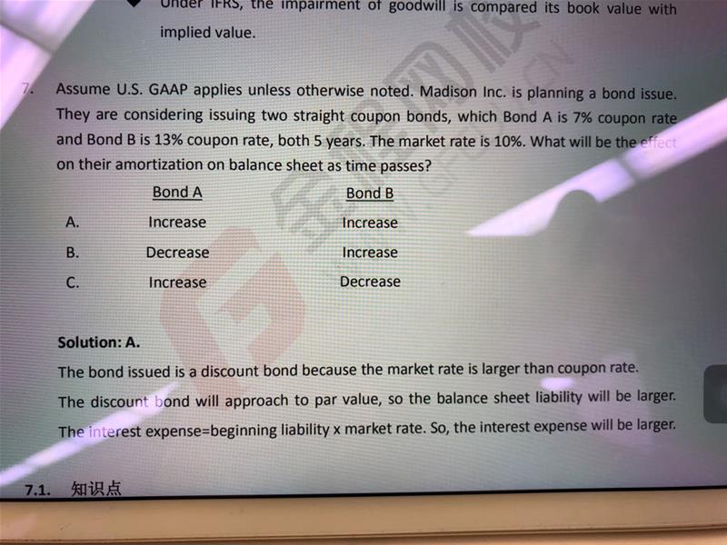 老师,这道题问的是啥啊?看不懂英文 effect on their amortization on balance sheet as time passes