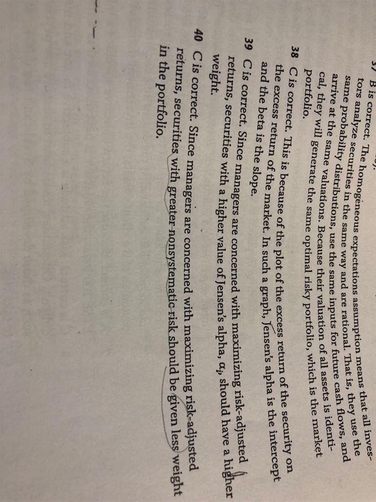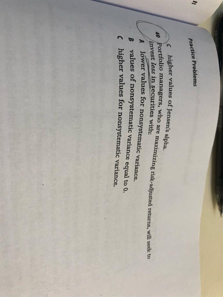 老师 请问这题为啥选C呀, non systematic 不是公司特有的吗,can be diversified, 放多点这种不是挺好的吗?为啥说要放less 呀(图一题目,图二答案)