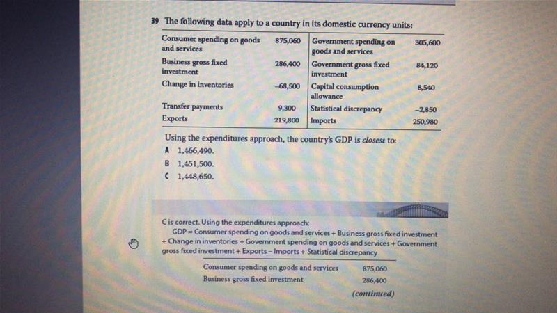 这是协会mock B的题。我怀疑答案是错的。expenditure approach 应该不考虑statistical discrepancy啊? 请老师解答