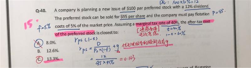老师您好,这个题目我的疑问是:题目问的是优先股的税后成本,如果不需要乘以税率,那优先股的税后是在哪里已经调整过了?