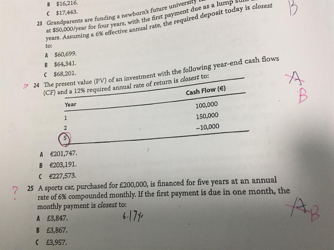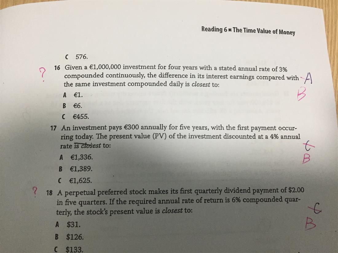老师,16题:3%,计算器保留4为,连续复利和每天复利,计算结果一样,无法计算价差,如何计算? 18题:为什么计算出133的PV后还需要折现回来才是答案 25题:为什么不要计算6%的EAR,另答案看得不懂,如果用计算器如何计算?