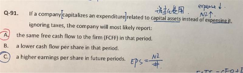老师您好,这道题C选项为什么不对?我的思路是资本化,expense就相对比较少,Net income变高,EPS就会高。纪老师讲的这就是上市公司释放利润的财务粉饰手段