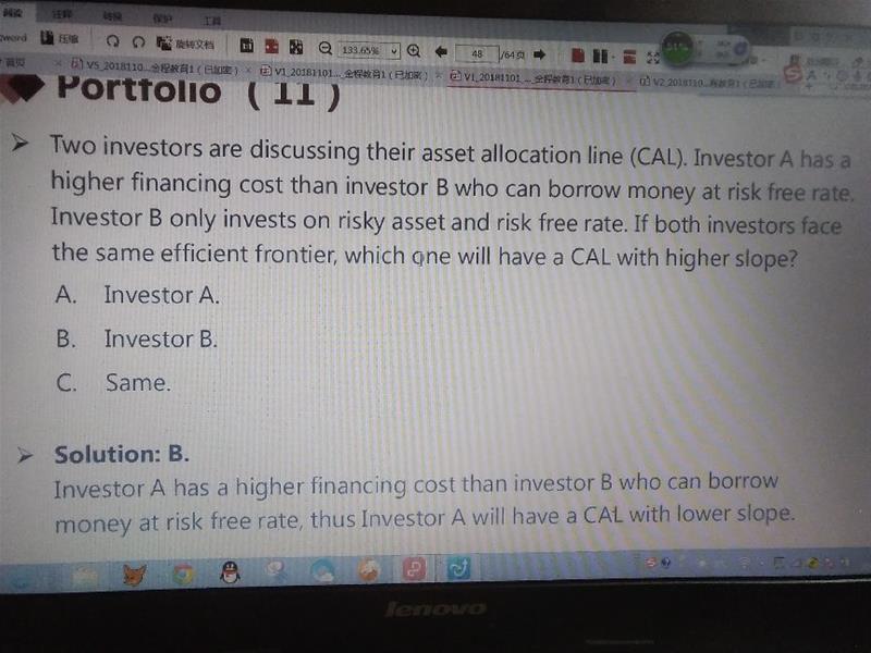 the investor with the higher risk aversion is most likely to have a steeper capital allocation line这句话对吗?
