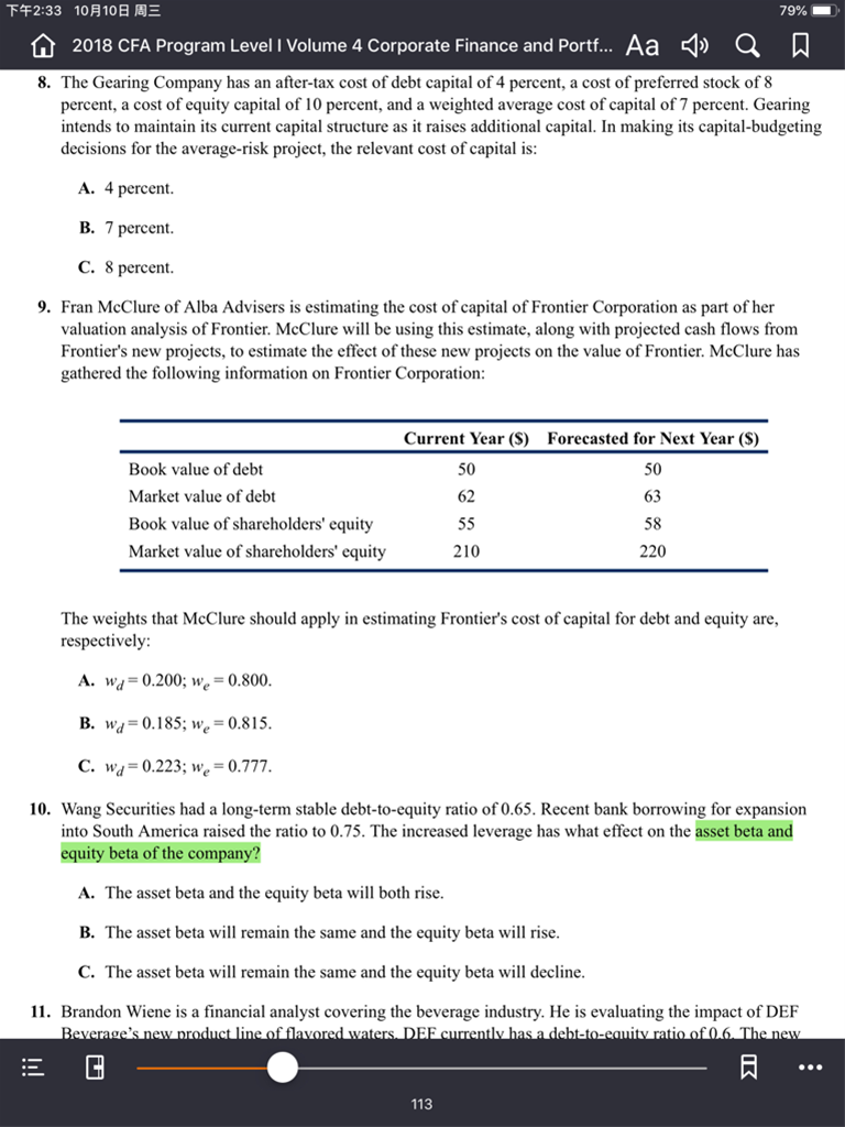 老师 请问第八题和第十一题 为什么计算新的wacc和asset beta时都是使用旧的weights,不是说使用target和forecast的capital structure比较好吗 谢谢