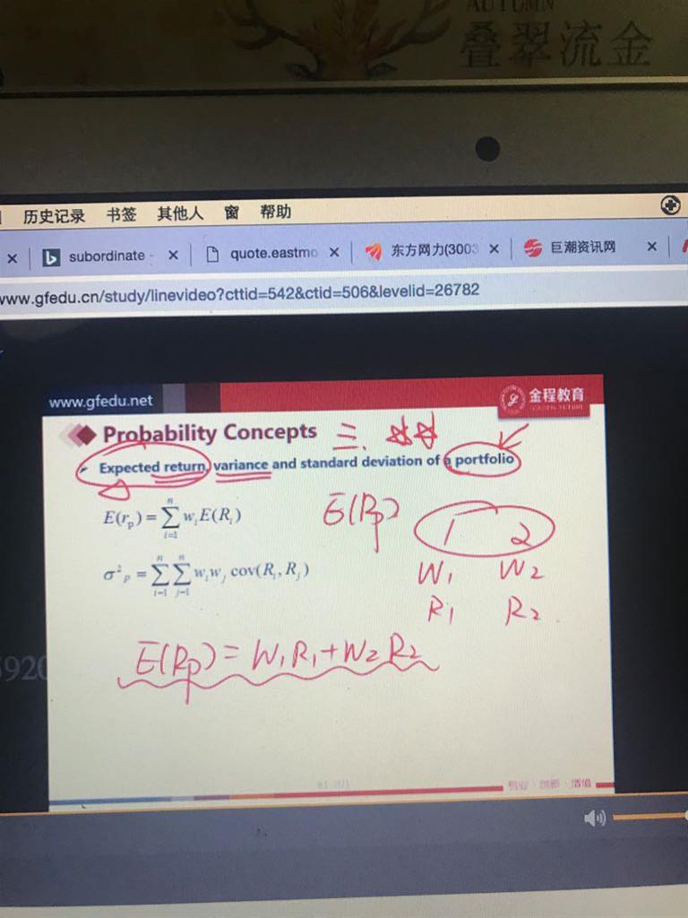 老师说求期望就是求加权平均,如果这句话成立。。。portfolio 的expected return 需要由w1*R1+w2R2之和除以二,才是平均