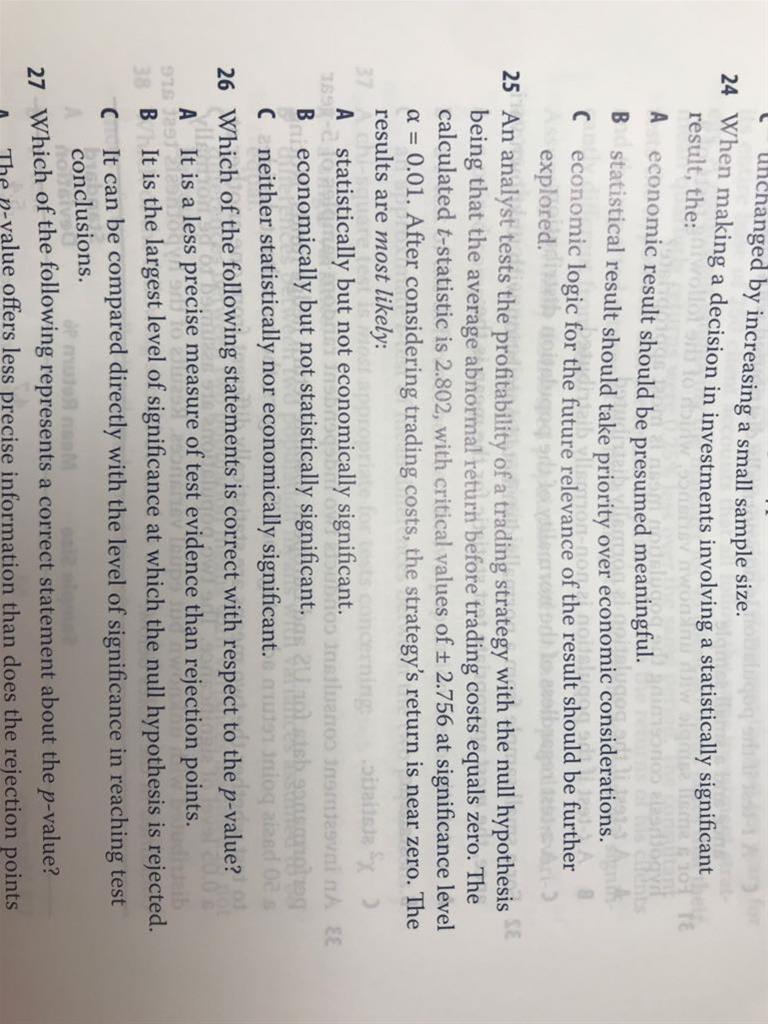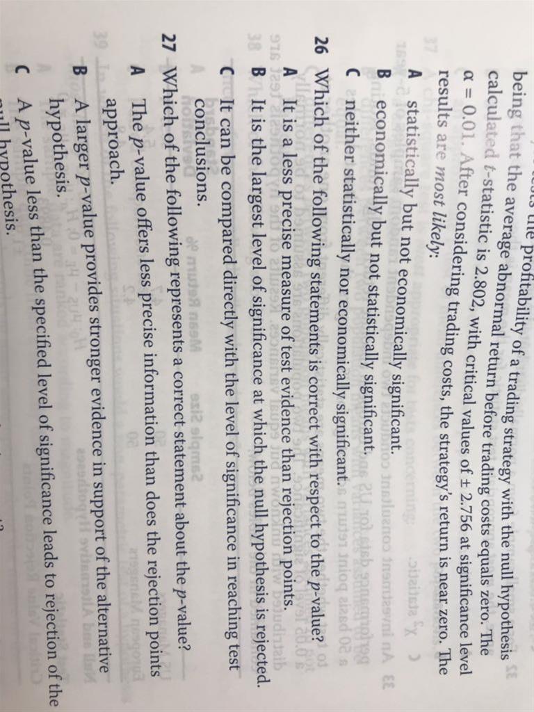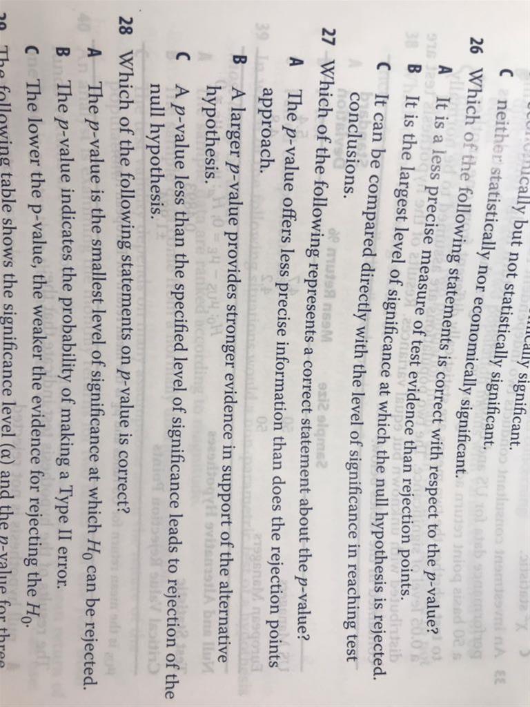 T27 b选项错在哪?c选项中p value大于specified level if significance不是也能rejecte 吗?题中也没说单尾双尾