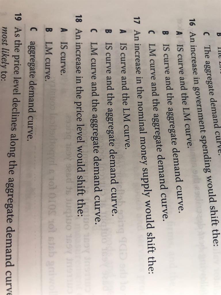 T17 是因为题干中说MS increases 说明是货币政策 所以LM shifts to the right吗?