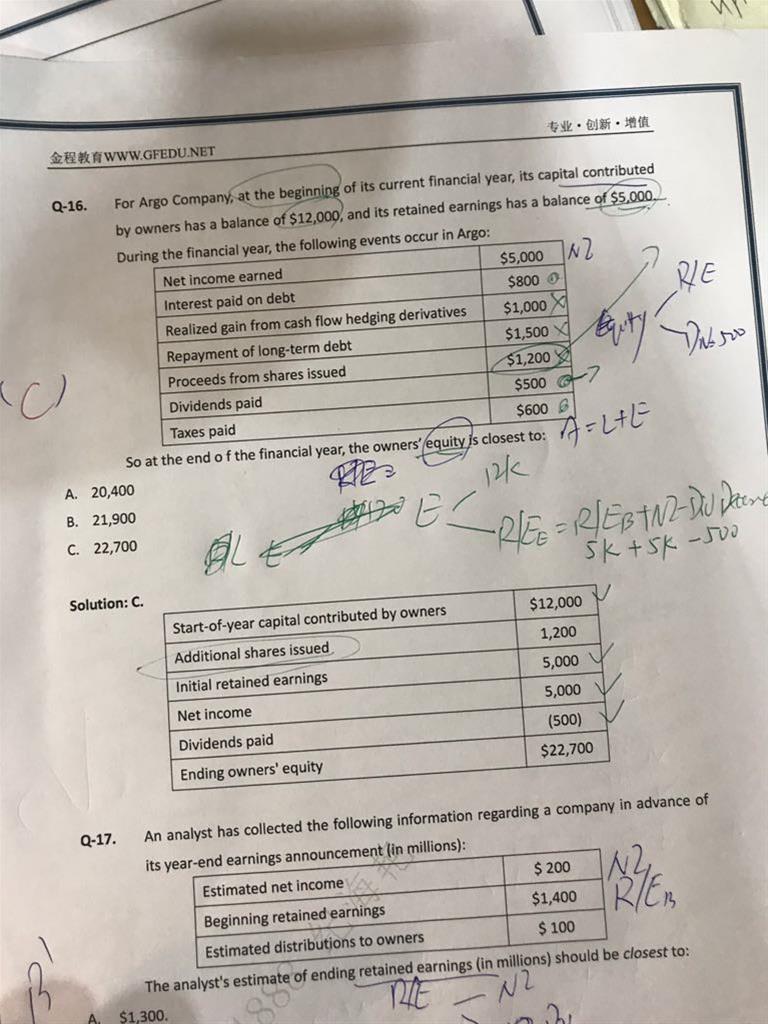 16.这里面的1200,proceeds from shares issued ,为CFF 的流入,为什么要算在equity中呢,为什么要把他一起计算进去呢,解释,谢谢