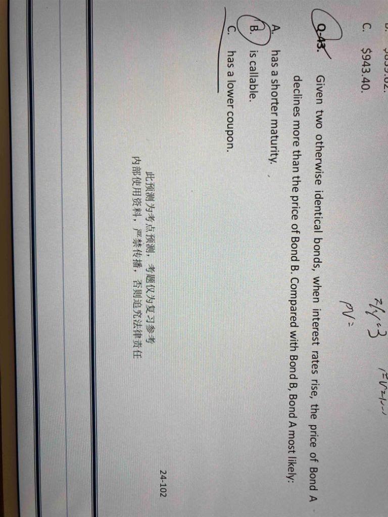 - 为什么不是C选项呢?credit risk是由于借款人违约未能偿还而使债权人遭受损失的风险;solvency risk是由于自己财务状况不佳而无法偿还到期债务的风险。二者紧密相连