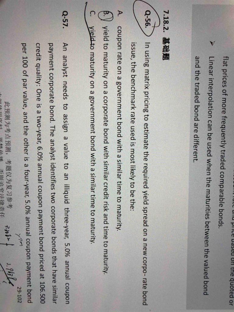 1. spot curve A yield curve for single payments in the future, such as zero-coupon bonds or stripped treasury bonds我理解,spot curve描绘了不同期限零息债券的收益率 2.Yield curve for coupon bonds shows the YTM for coupon bonds at various maturities, which can be calculated by linear interpolation我理解,yield curve描绘了不同期限付息债券的收益率 3.par bond yield curve描绘了不同期限平价债券收益率 4.forward yield curve shows the future rates for bonds or money market securities for the same maturities for annual periods in the future 我理解,forward rate描绘了远期每年的收益率 不知我的理解,对不?